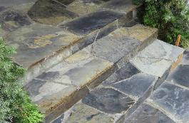 | Flagstone Patios and Walkways ~ Porches & Steps ~ Informal Pathways Elegant but Earthy, Flagstone contributes an established quality to yards and gardens. Choose from a wide array of warm Arizona Flagstone, fine Bluestone or lustrous Slate. Flagstone can be founded on concrete, or it can be "dry-laid" on gravel. Patterns can be cut with even, clean margins or laid loosely with natural broken edges. One style that will suite your garden, please your eye, and offer dependable service for years to come. |