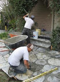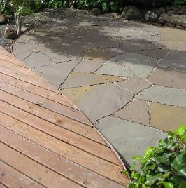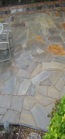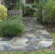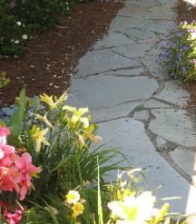 | Flagstone Patios and Walkways ~ Porches & Steps ~ Informal Pathways Elegant but Earthy, Flagstone contributes an established quality to yards and gardens. Choose from a wide array of warm Arizona Flagstone, fine Bluestone or lustrous Slate. Flagstone can be founded on concrete, or it can be "dry-laid" on gravel. Patterns can be cut with even, clean margins or laid loosely with natural broken edges. One style that will suite your garden, please your eye, and offer dependable service for years to come. |